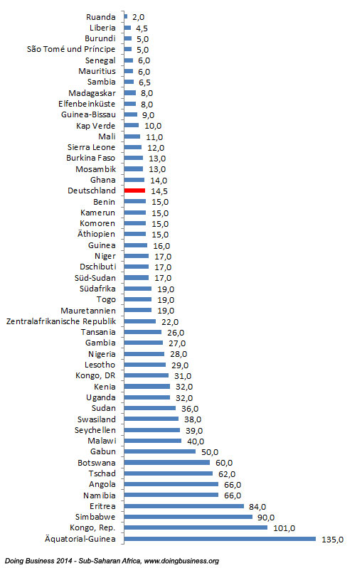 Wie viele Tage dauert die Gründung in den Ländern Subsahara-Afrikas?